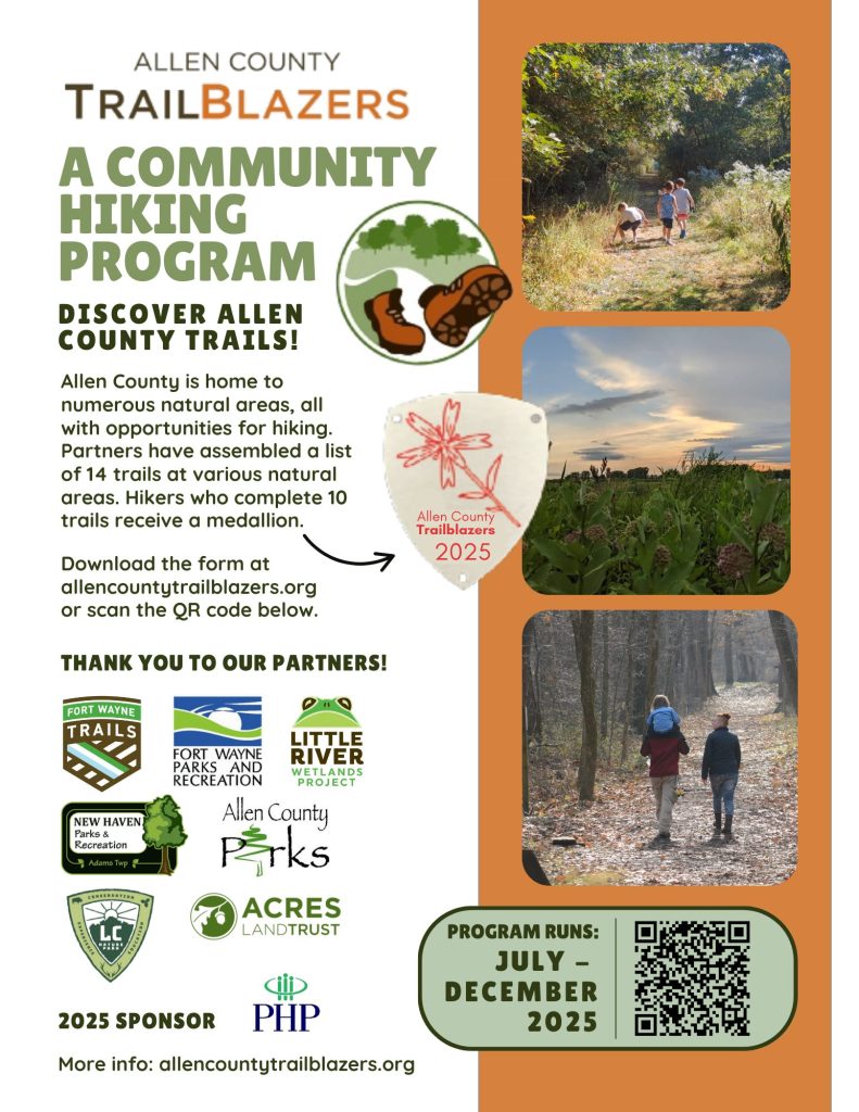 Not to be confused with Fort Wayne Trails’ own Trail Blazers Monthly Donor program, we are a participating partner in the Allen County Trailblazers Hiking Program.