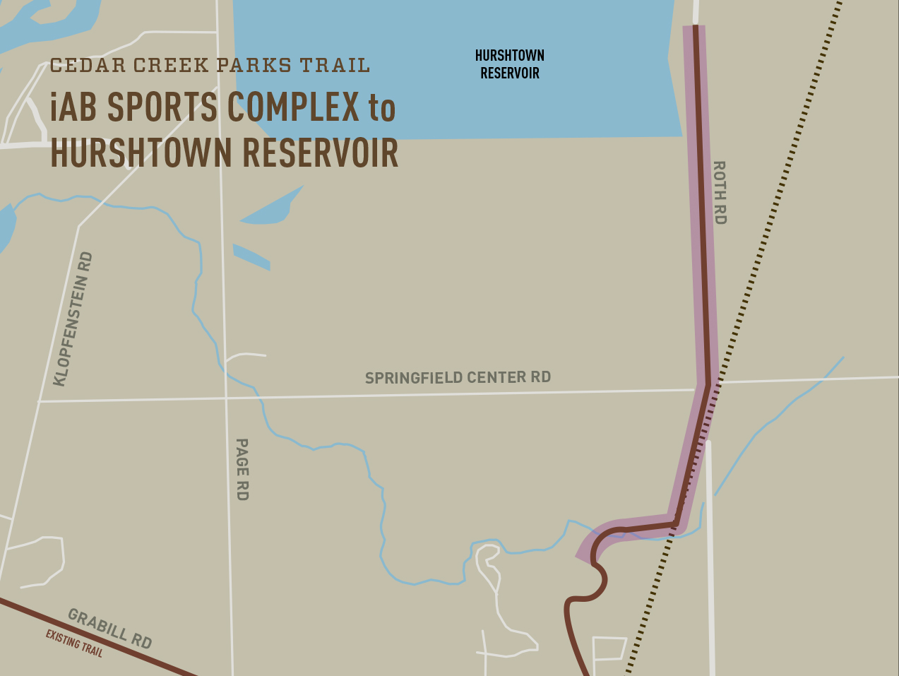 A 10′ wide trail will extend from the Leo-Grabill Sports Complex in Grabill to the north side of Haifley Ditch, along the railroad corridor to Springfield Center Rd. and continue on the west side of Roth Rd. to the entrance of Hurshtown Reservoir. This is a part of the NewAllen Alliance Stellar Portfolio from 2019-2023. Allen County is finalizing an agreement on who will lead the design and ROW acquisition for the project.